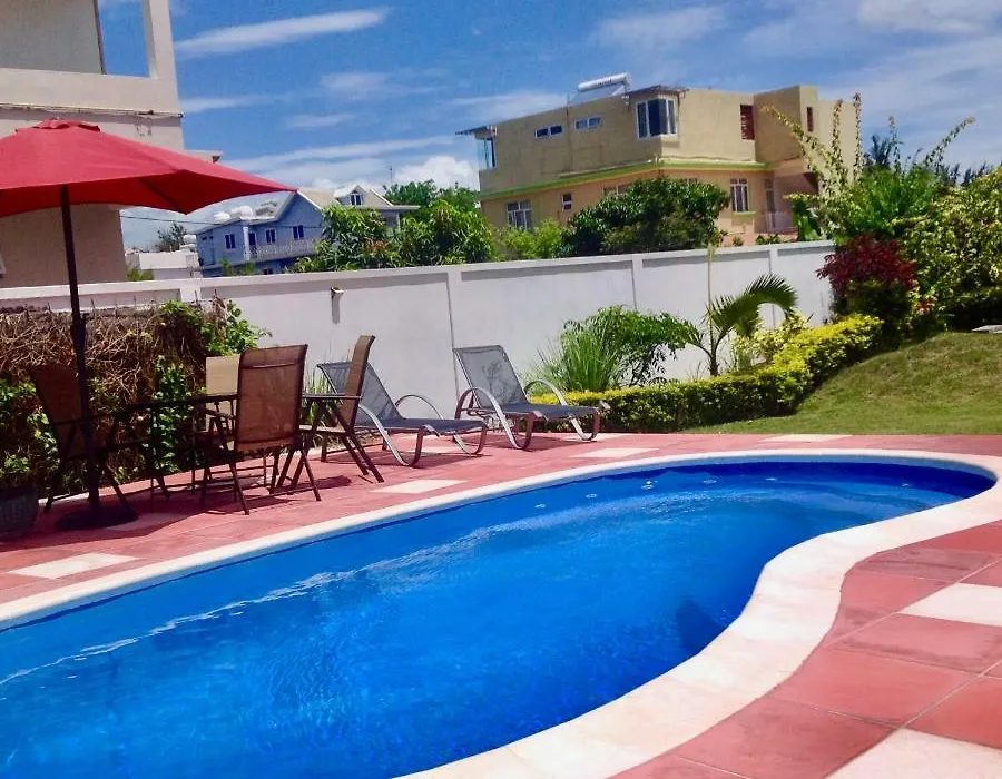 Situada a tan solo 1 km de la Playa Flic en Flac, la Cardamon Villa Is A 2 Bedroom With 1 Bathroom And Seperate Toilet Detached House With Ac And Swimming Pool, 5 Minutes Walk From Flic En Flac Public Beach invita a los huéspedes a relajarse en una terraza.